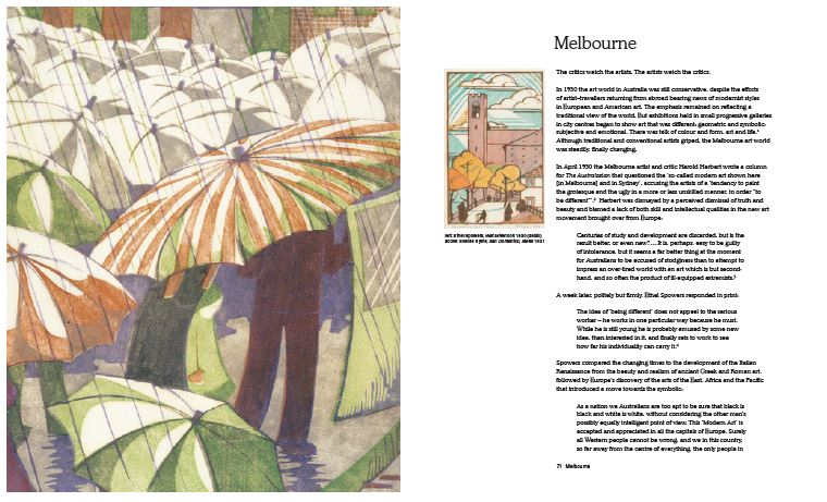 Spowers & Syme celebrates the artistic friendship of Melbourne artists Ethel Spowers and Eveline Syme. Their prints, drawings and paintings – remarkable for their expressive energy – capture the zeitgeist of the interwar years. This beautifully illustrated catalogue traces their stories as two women from rival media families who pioneered modern printmaking in Australia.