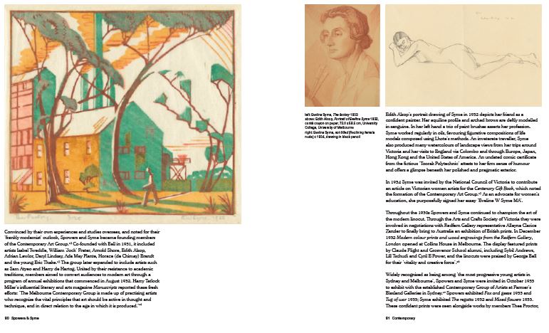 Spowers and Syme were part of a newly independent generation of women artists able to travel widely and study with avant-garde teachers in England and France during the 1920s and 1930s. They brought back to Australia the spirit and knowledge of modern European art movements and techniques, which they shared through the expanding networks of art societies and private women’s clubs in Melbourne and Sydney.